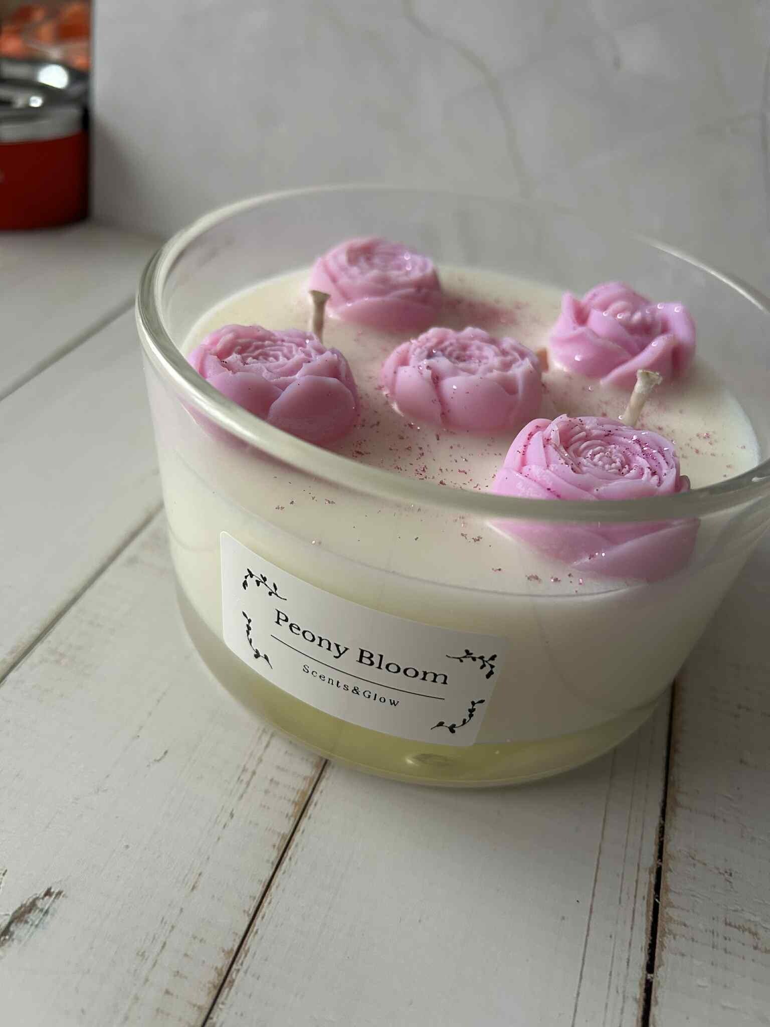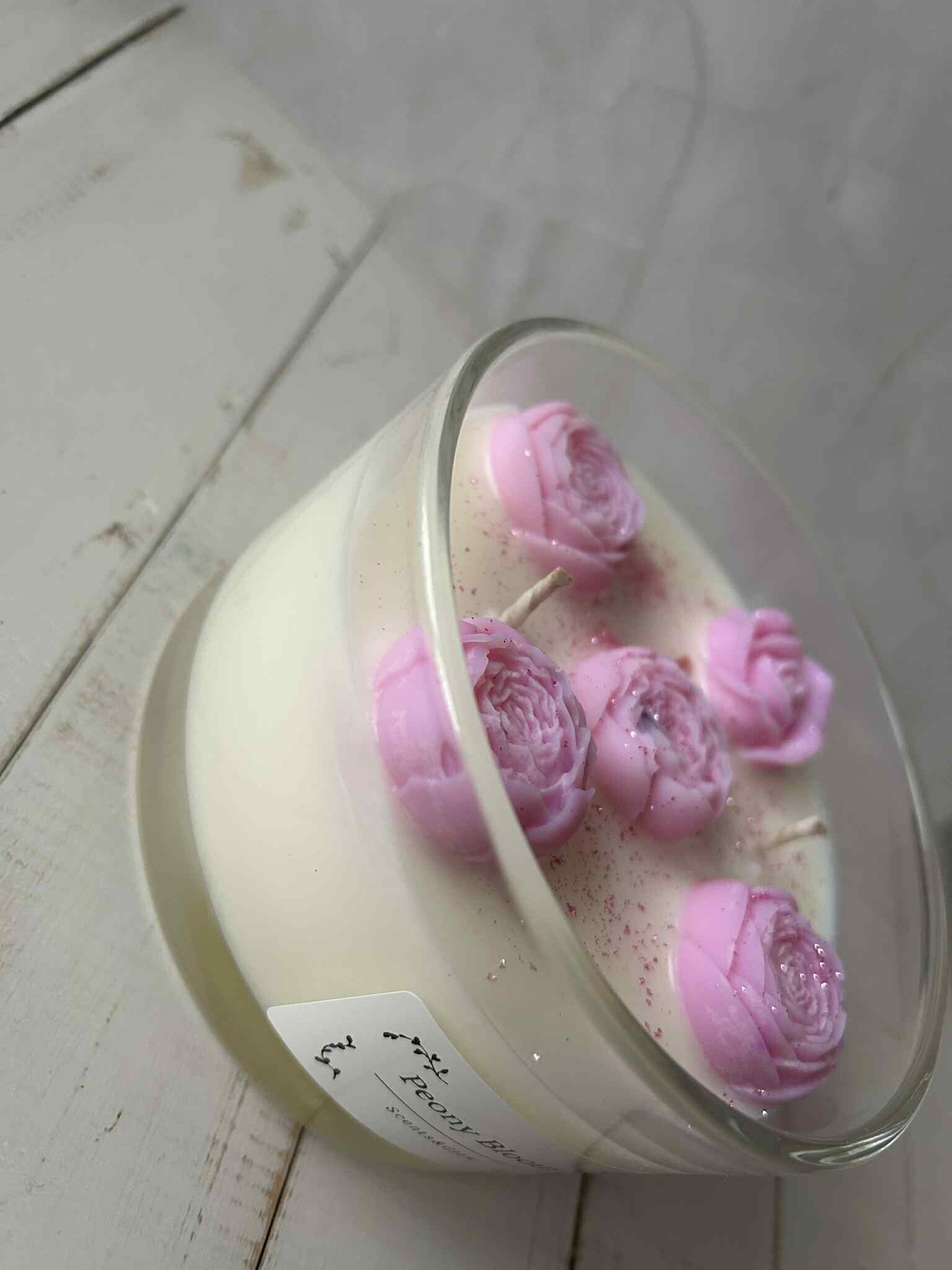 🌸 Peony Bloom Candle – handgemaakt met natuurlijke sojawas
